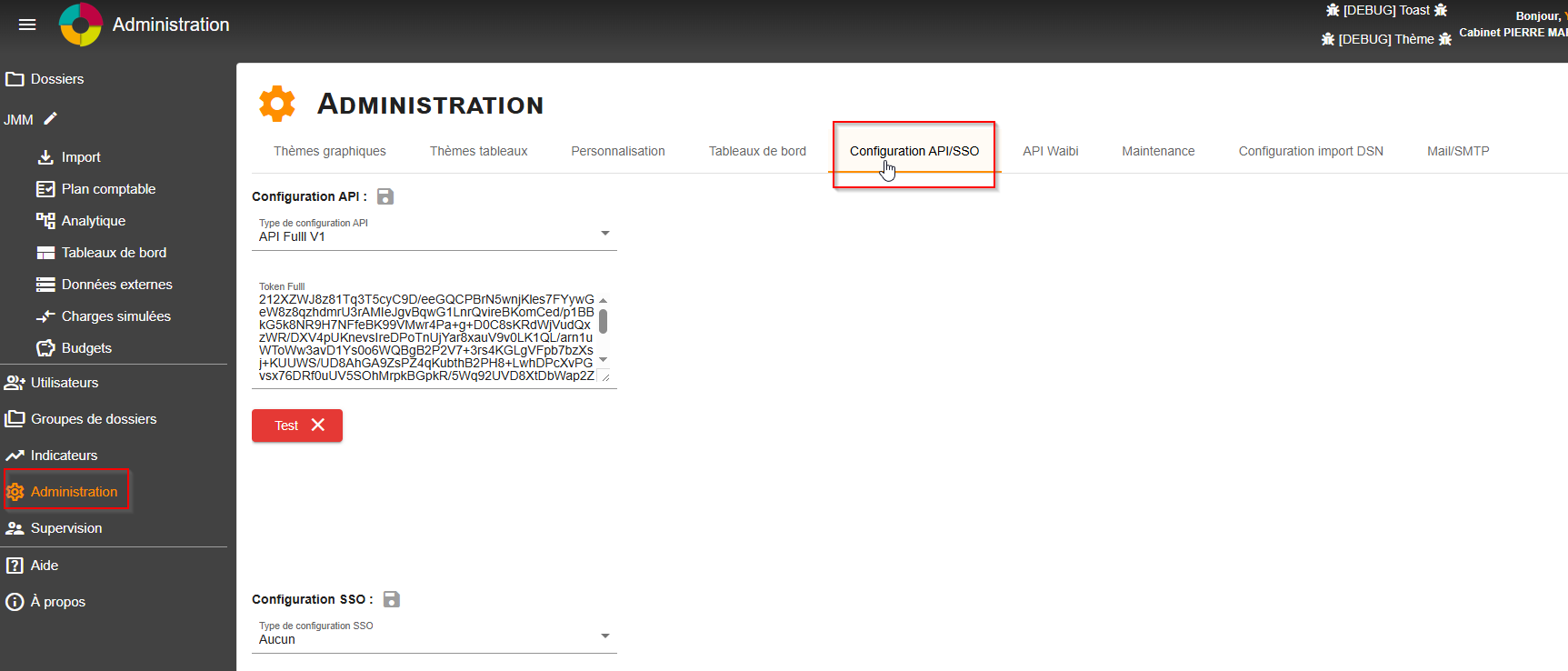 - Selon le logiciel comptable et le portail collaboratif que vous utilisez, vous aurez un paramétrage à faire dans le menu administration, onglet configuration API/SSO :