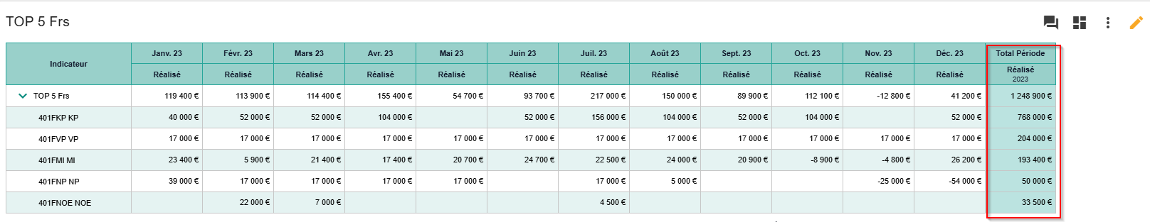 Il est également possible de trier ces comptes par ordre croissant ou décroissant sur le total ou d’afficher un TOP (TOP5, TOP10, etc…).