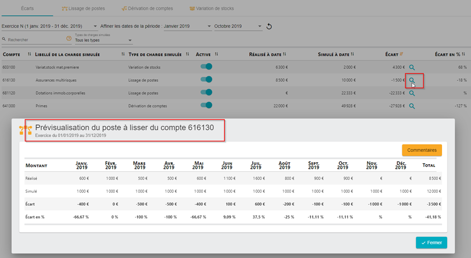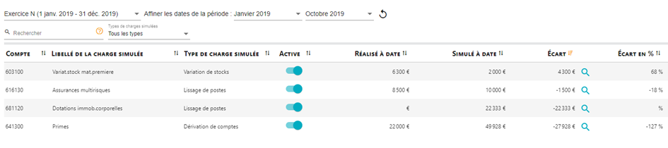 Le contrôle des écarts est disponible pour les charges simulées suivantes : Lissage de postes Dérivation de comptes Variation de stocks Cette fonctionnalité permet : D’afficher l’intégralité des charges simulées du dossier De créer / consulter les ...