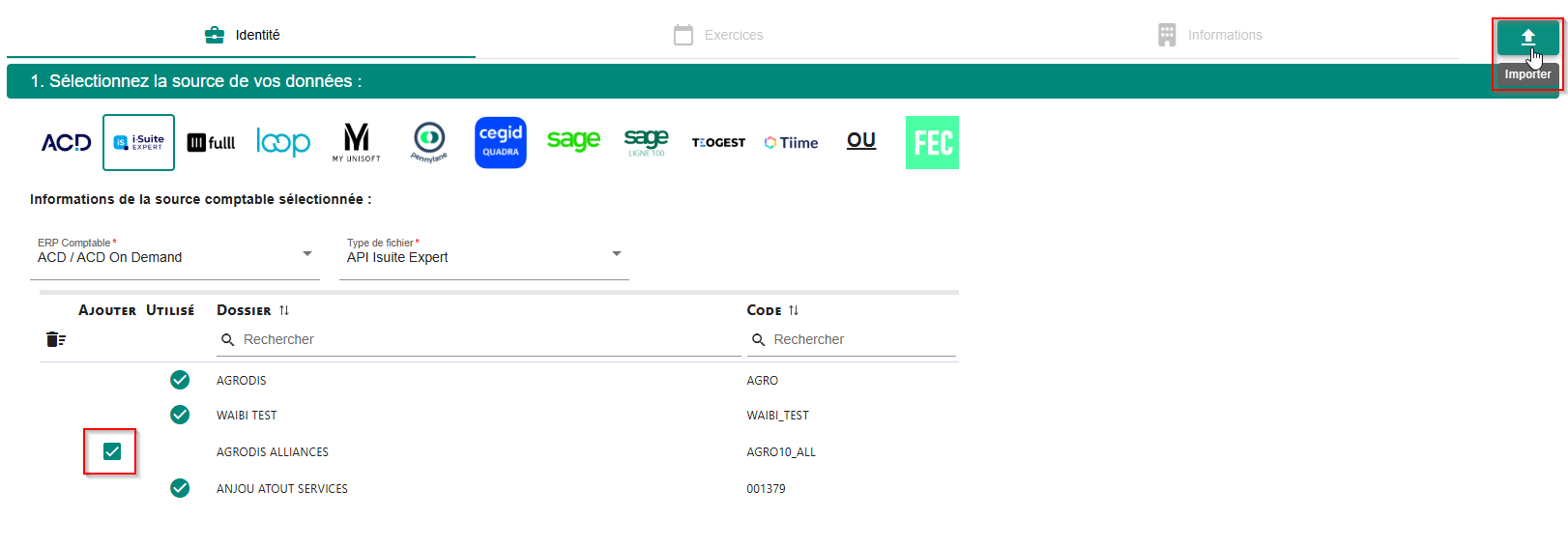 Cocher le(s) dossier(s) ACD à importer dans WAIBI (colonne « AJOUTER ») puis cliquer sur « Créer les dossiers » :