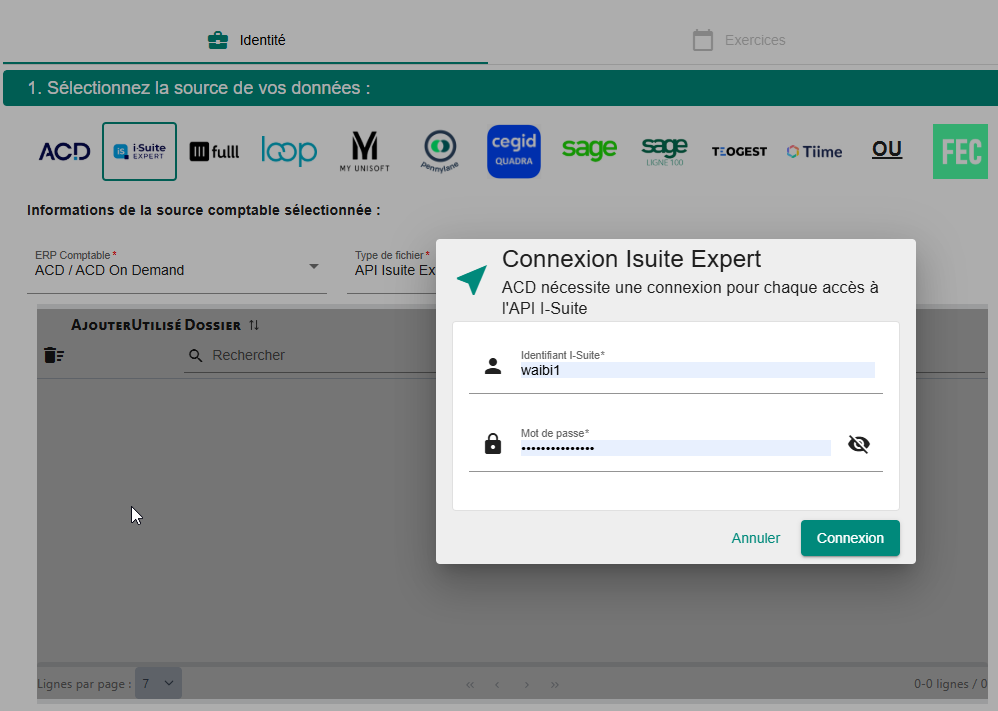 Pour autoriser les dossiers dans WAIBI depuis Génération Experts, consulter le lien suivant : Mise en place de l'API Sage Génération Expert 1- Création du dossier Depuis la liste des dossiers, cliquer sur le bouton : Sélectionner l’ERP Sage ...