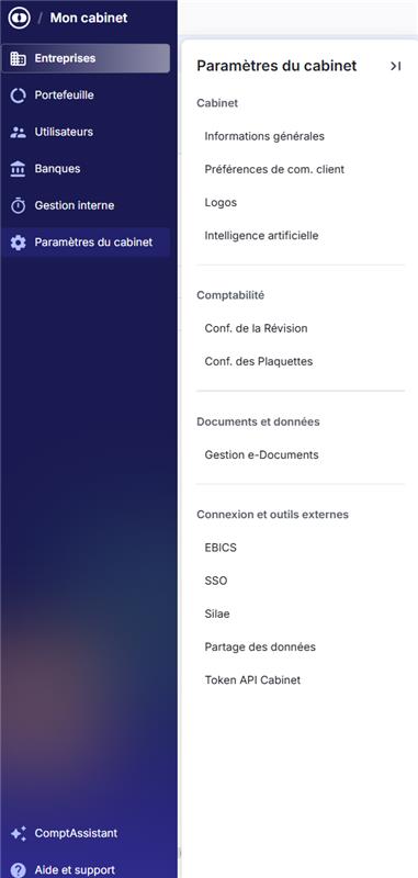 1️- Paramétrage de l’API dans I-Suite Expert ➤ Accéder aux paramètres API Se connecter à l’espace DIA Client. Aller dans : Administration → I-Suite Expert → Configuration → Paramètres. ➤ Identifier les éléments à renseigner dans Waibi Une fois sur la ...