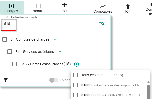 Dans un widget tableau, la fonction Xplode permet d’afficher l’arborescence des comptes présents dans la fourchette de comptes de l’indicateur créé. Ci-dessous un comparatif d’un indicateur de chiffre d'affaires avec et sans utilisation de la ...