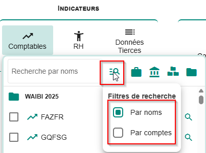 - Vous pourrez choisir le type d’indicateur (comptable, RH ou données tierces) :