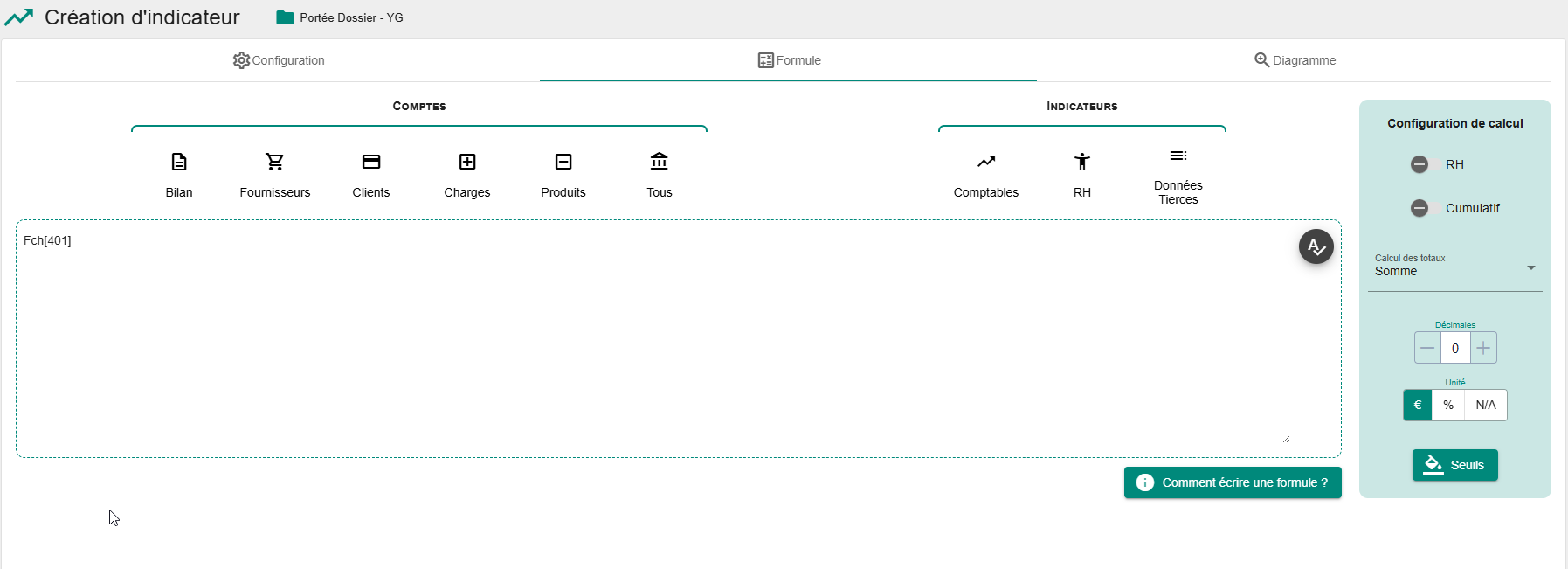 On peut également mixer, dans la formule, des comptes et des indicateurs.