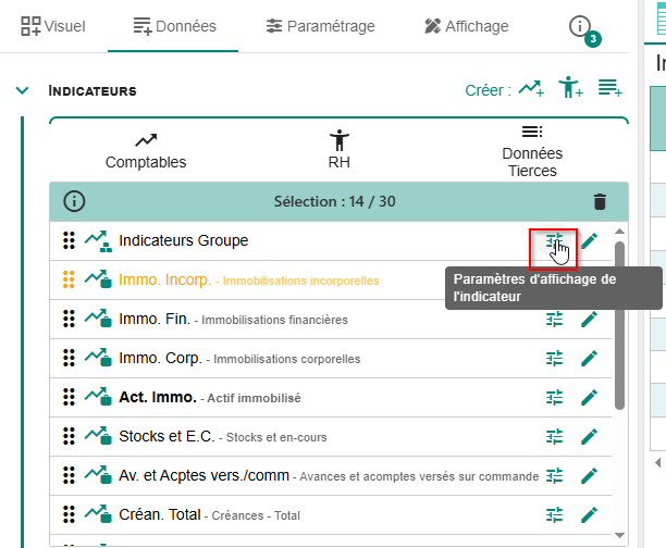 - Vous avez le choix entre un indicateur comptable, RH ou une donnée tierce :